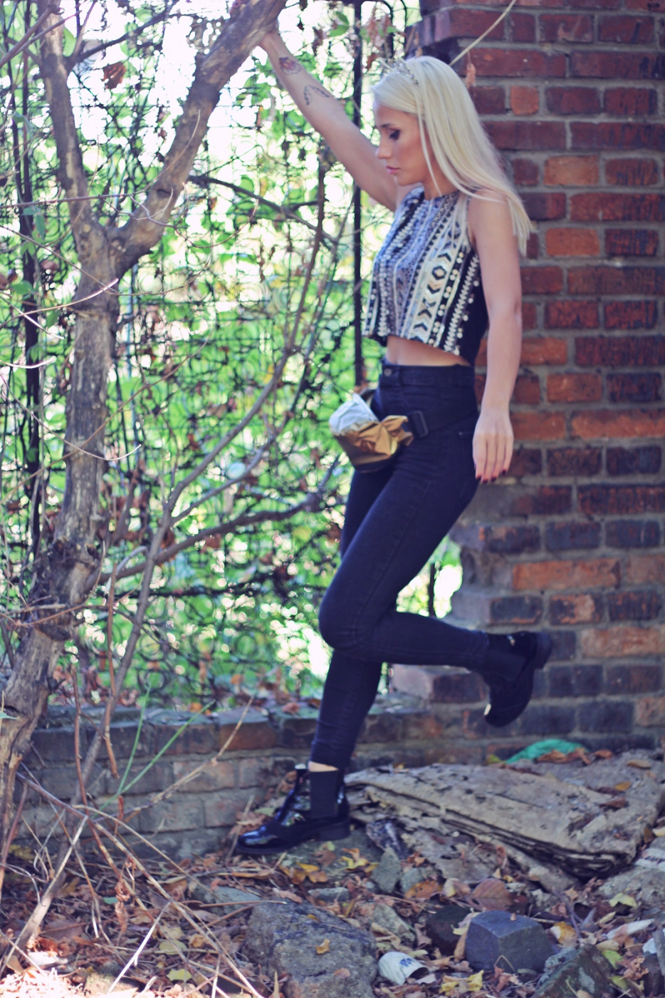 Am ales să îmbrac o pereche de blugi negri cu talie înaltă (foarte avantajoși pentru fetele micuțe de înălțime) de la Pull &Bear, un top de la Sheinside, și niște ghetuțe negre de lac, pe care abia mi le-am luat și de care sunt super mândră!